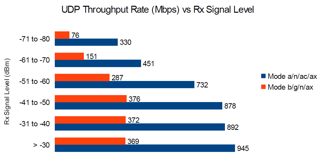 2. ผล Speed Test UDP Throughput Rate ของ Wi-Fi 2.4GHz และ 5GHz ตามระยะทางใกล้สุดไปจนถึงไกลสุด |