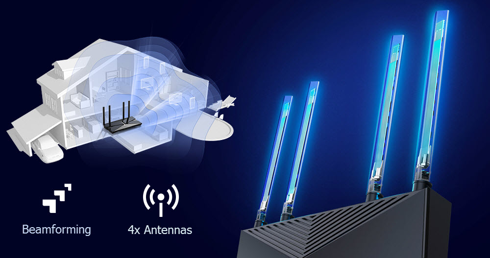 Expanded Coverage Throughout Your Home.เทคโนโลยี Beamforming , independent Front-End Module, และเสาสัญญาณ 4 เสาสัญญาณ พร้อมที่จะรวมกับเพื่อปรับแต่งสัญญาณให้สมบูรณ์ เพิ่มความแรงอินเตอร์เน็ตให้ทุกอุปกรณ์ของคุณ |