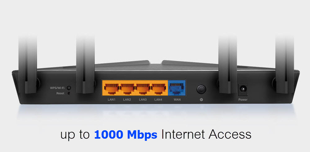 Gigabit Broadband Internet AccessThe Gigabit Ethernet ports allow you to take full advantage of your broadband speed up to 1 Gbps. Plug your PCs, smart TVs, and game consoles into one of the four Gigabit Ethernet LAN ports for fast and reliable wired connections. |