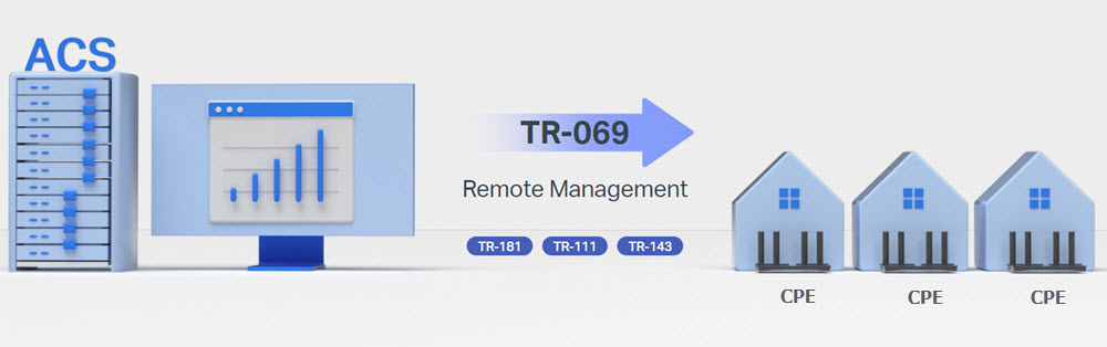 Support TR-069 Remote Managementด้วยระบบ ACS หรือ Auto Configuration Service ทำให้ผู้ให้บริการ Internet สามารถ Remote จัดการ ปรับเปลี่ยนค่า Config รวมถึงบำรุงรักษา และ Monitor อุปกรณ์ CPE ปลายทางทั้งแบบกลุ่ม หรือแบบเดี่ยวได้อย่างสะดวก ผ่านโปรโตคอล TR-181, TR-111 และ TR-143 |