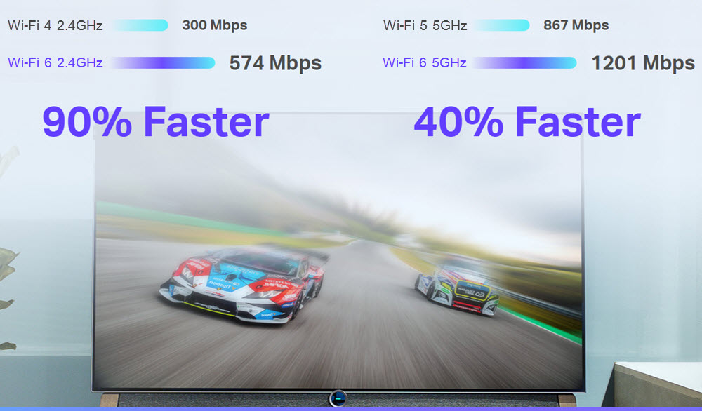 | Signal Rate | 5GHz: Up to 1201Mbps (802.11ax) 2.4GHz: Up to 574Mbps (802.11ax) |